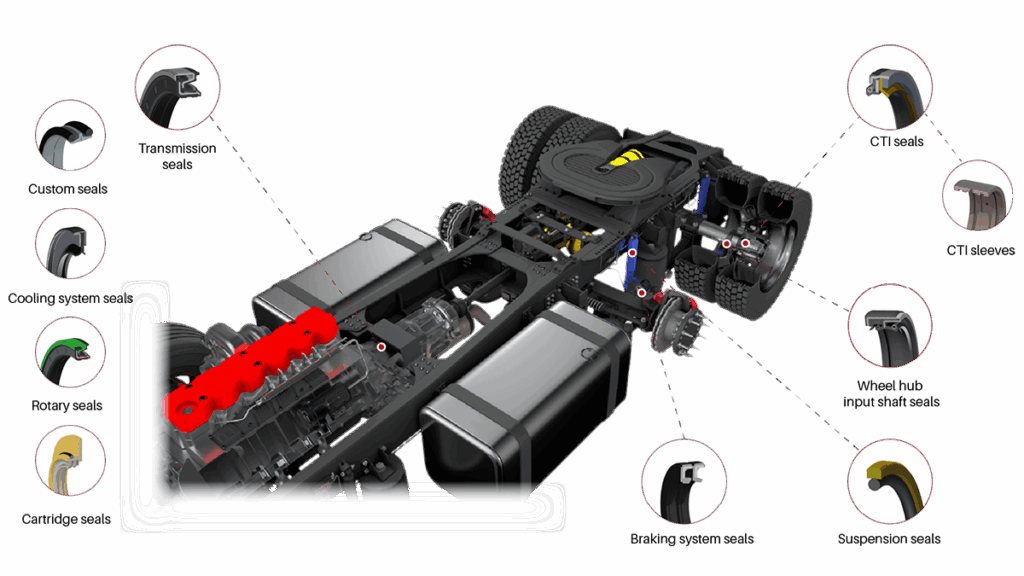 We provide a variety of driveline sealing options, covering, CTI Seals, Suspension, input shaft, transmission braking systems, gearbox seals and more.